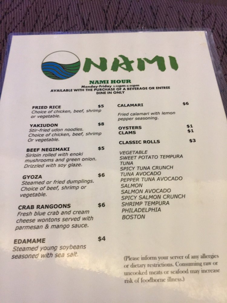Nami is a sushi bar located in Providence, RI, offering a variety of Japanese dishes and a unique omakase dining experience. With a range of vegetarian options, outdoor seating, and a full bar, Nami caters to customers looking for a relaxed yet upscale dining experience. The menu includes fresh and high-quality sushi, sashimi, and specialty rolls, as well as hibachi options for those looking for a different dining experience. Customers have praised the freshness of the fish and the unique flavor combinations offered by the chef. The omakase experience has been described as a must-try for sushi enthusiasts, with each course carefully explained and expertly prepared. While the prices may be on the higher side, customers find it worth it for special occasions or when entertaining guests. Overall, Nami provides a welcoming atmosphere, attentive service, and top-notch sushi that keeps customers coming back for more.